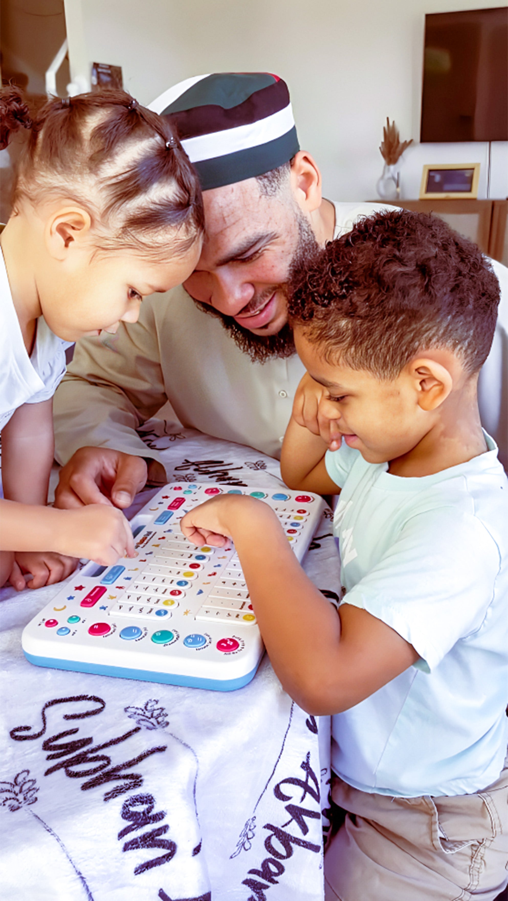 Simple, screen-free play that encourages listening, repetition, and early Arabic learning.