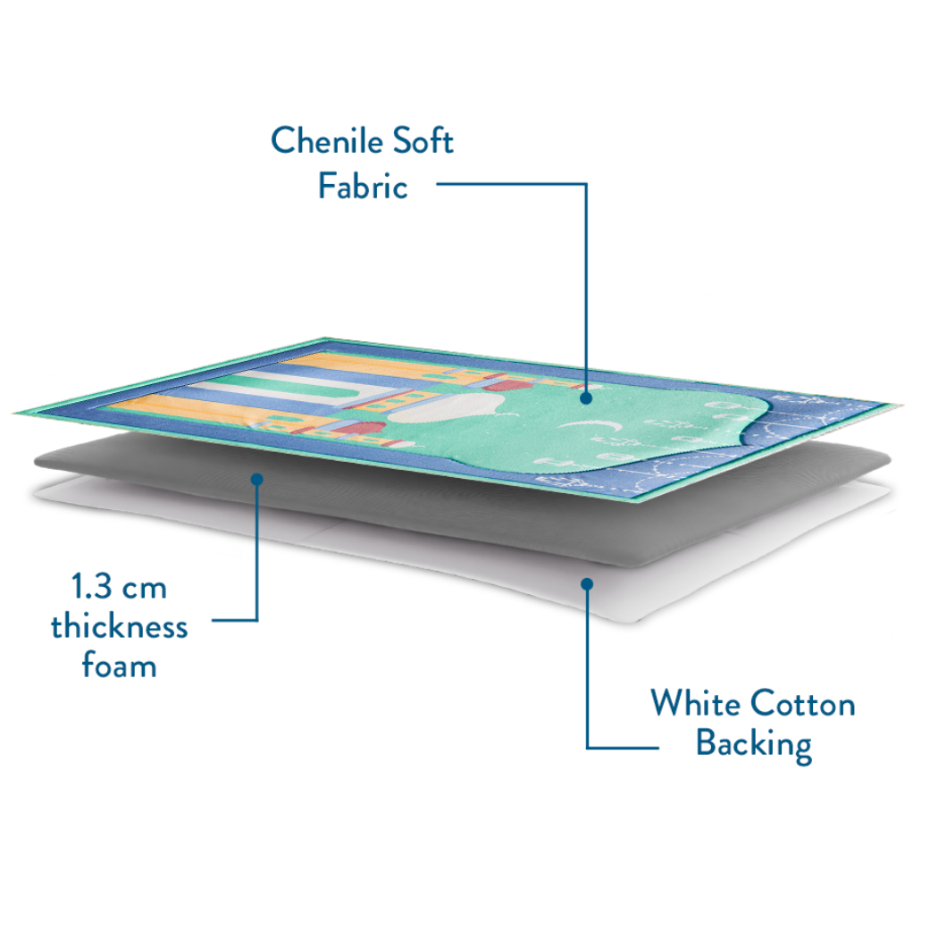 Crafted with chenille fabric, 1.3 cm thick foam, and white cotton backing for unmatched